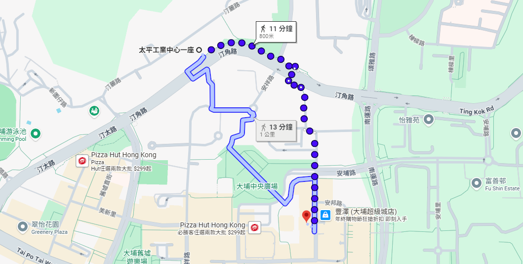 | 大埔廣場 | 私家車 / 的士 | 約 3-5 分鐘 | 經汀角路直達,適合搬運大件物資。 |
