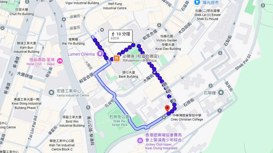 | 石籬(一)邨 | 步行 | 約 8-10 分鐘 | 經圍乪街直達打磚坪街,路徑平坦方便。 |
