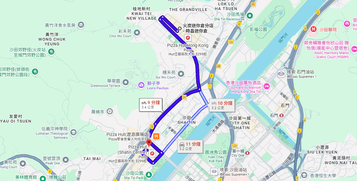 | 好運中心 | 私家車 / 的士 | 約 8-10 分鐘 | 經源禾路直達火炭,搬運大件寄存物品最快。 |