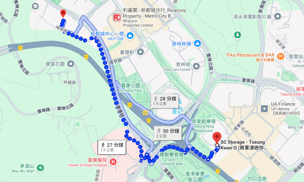 • 實測距離: 從怡心園步行至本店,平均只需約 27分鐘 的時間。
